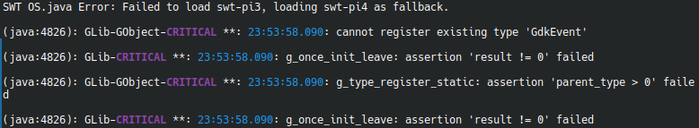 But I fail running eclipse with swt or GLib error. And I can not find solution to running eclipse normal. I try install eclipse-swt from OBS a few days ago. And fail running eclipse too. Look like below: