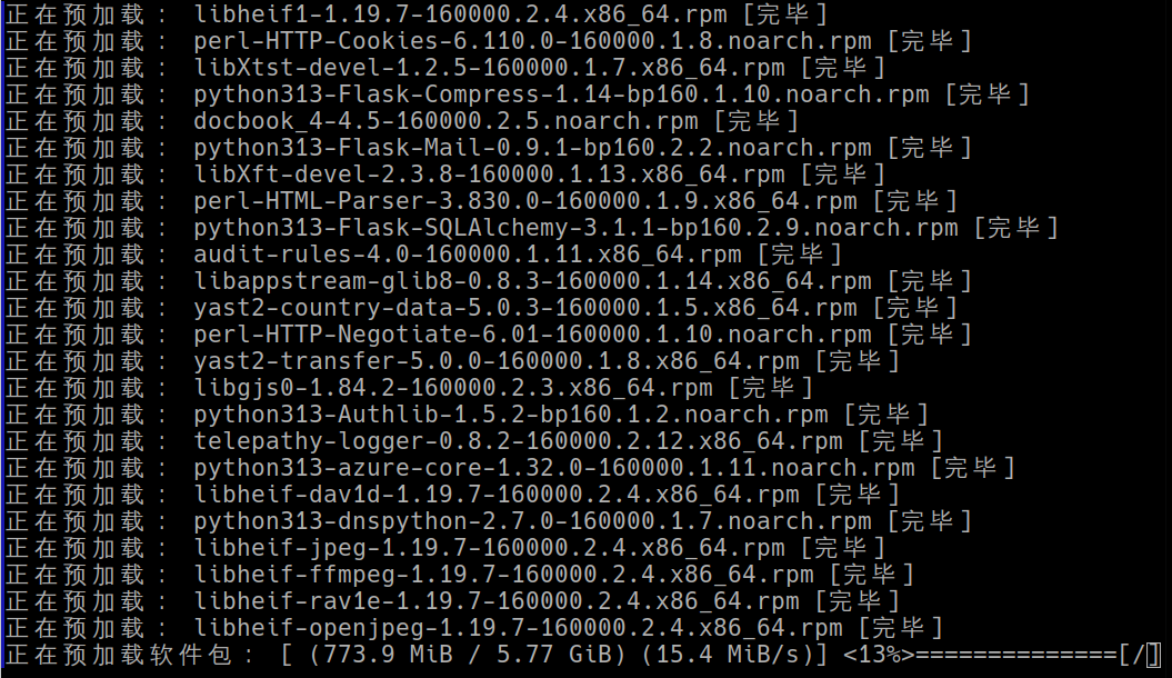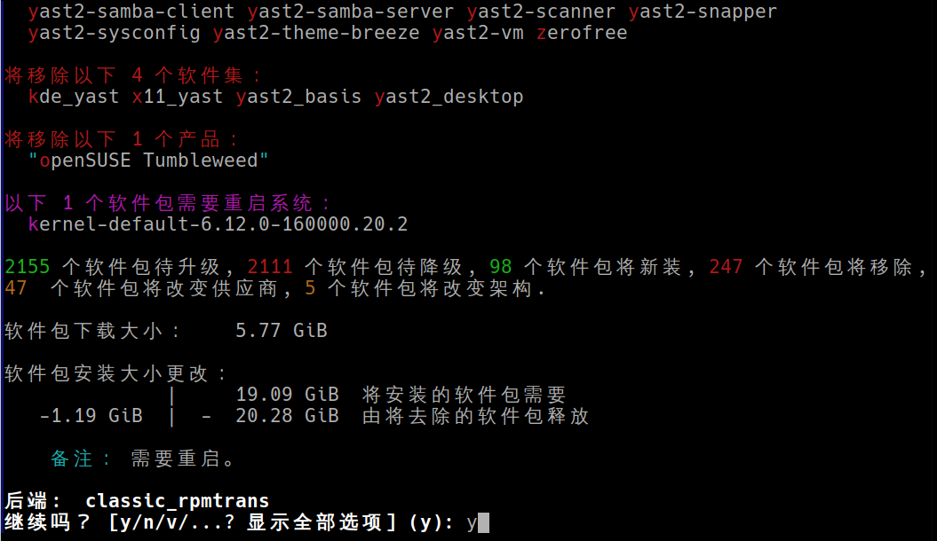 Very huge package space. And then need confirm selecting first option to replace Tumbleweed provided packages to Leap 16. And upgrade is very quickly.