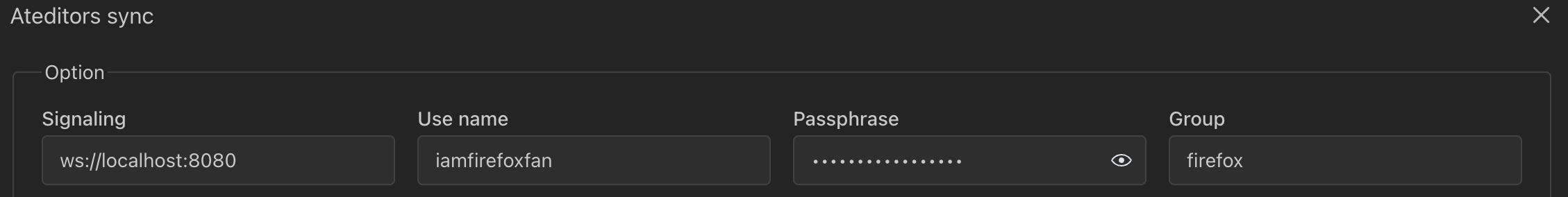 要使用这个信令服务,你只需要访问 ateditors 的演示应用网站运行数据同步功能。添加信令服务字段信息如下: